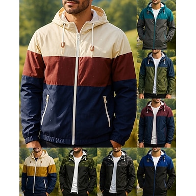 Herren Windjacke Softshelljacke Wanderjacke Außen Wasserdicht Winddicht Wanderoutfits Wanderbekleidung Frühling Herbst Oberteil Camping / Wandern / Höhlenforschung Laufen Patchwork Armeegrün Rot