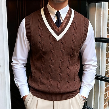Herren Pullunder Pullover Strickpullover Gerippt Zopfmuster Stricken Normale Oberteile Gestrickt Einfach V Ausschnitt warm halten Moderne zeitgenössische Urlaub Straße Bekleidung Ärmellos Herbst