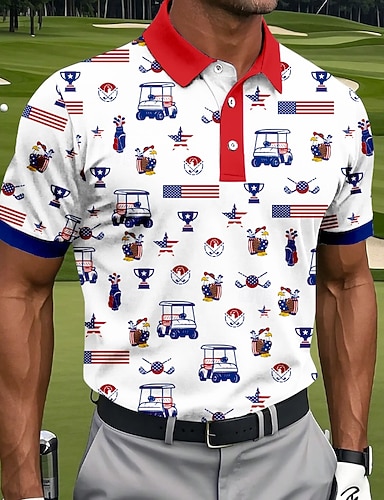 4. Juli 2026 250. Herren Amerikanische US-Flagge Poloshirts Kurzarm Polo-Shirts Hemden mit Kragen Lässig Outdoor Athleisure Knöpfe Atmungsaktives Gewebe Sommer Frühling Rot 1 Rot 3 Weiß