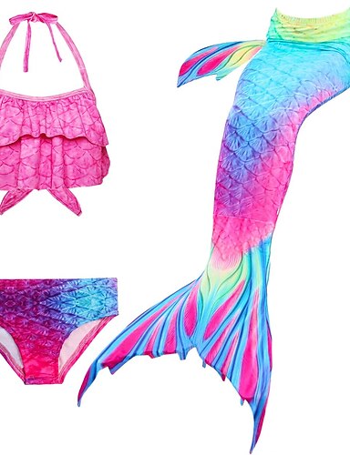 kinderkleidung Mädchen Dreiteiler Meerjungfrau Bademode Bikini Bikini Schwimmen Kindertag Regenbogen Kuschelig Sexy Badeanzüge 3-10 Jahre Sommer Regenbogen