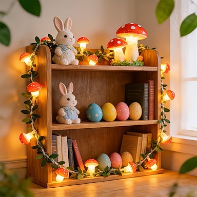Lichterkette mit Pilzmotiv, 3 m lang, 20 LEDs, batteriebetrieben, für Ostern, Partys, Feiertage, Hochzeiten, Garten und als Dekoration für drinnen und draußen.