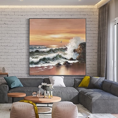 handgefertigtes Ölgemälde auf Leinwand, Wandkunst, Dekoration im modernen Stil, Meereswellen, Rifflandschaft für die Inneneinrichtung, gerolltes, rahmenloses, ungedehntes Gemälde