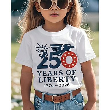 100% Baumwolle Kinder Mädchen Schwarz Weiß Grafik Freiheitsstatue 250-jähriges Jubiläum Amerikanische US-Flagge für Kinder T-Shirt Rundhalsausschnitt Kurzarm Urlaub Sport & Outdoor Alltagskleidung