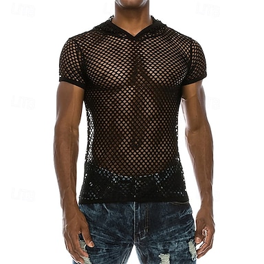 Herren T Shirt T-Shirt Kurzarmshirt Kurzarm Mit Kapuze Sommer Einfach Mode Designer Basic Netz Urlaub Straße Ausgehen Schwarz Top T-Shirt für Herren