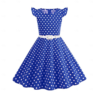 Pünktchen Retro Vintage 1950er Jahre Grease Outfits Urlaubskleid Schlagkleid Damenkostüm Vintage Cosplay Alltagskleid Kurzarmkleid Karneval