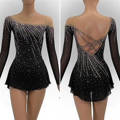 Eiskunstlaufkleid Damen Mädchen Eislaufen Kleid Schwarz Patchwork Offener Rücken Netzstoff Hohe Elastizität Training Wettbewerb Eiskunstlaufkleidung Klassisch Kristall / Strass Langarm Eislaufen