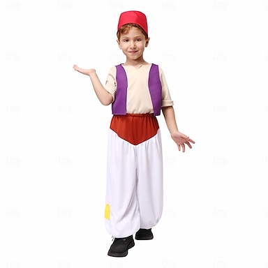 Märchen Prinz Aladdin Cosplay Kostüm Outfits Märchenfiguren Jungen Kinder Halloween Karneval Leistung Pädagogisches Ankleiden Verkleidung für Schulveranstaltungen