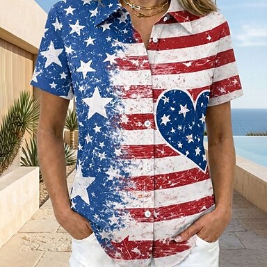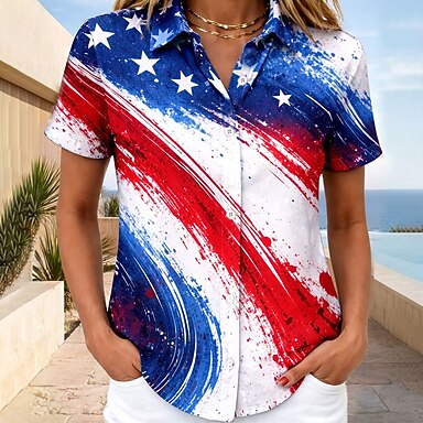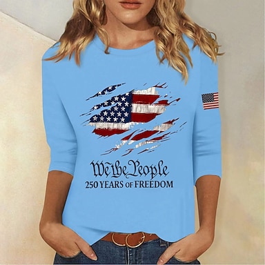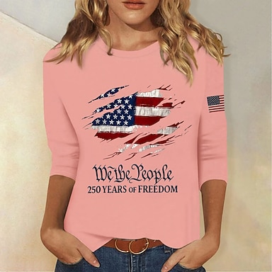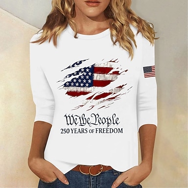 Amerikanischer Unabhängigkeitstag Damen T Shirt Druck Grafik Buchstabe Amerikanische Flagge Vintage Stilvoll Klassisch Kurzarm Rundhalsausschnitt Normale Oberteile Täglich Weiß Rote Marineblau Rot