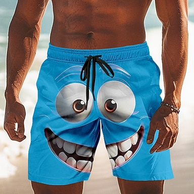 Herren 3D Zeichentrick Lächelndes Gesicht Große Augen Badehosen Badeshorts Boardshorts Mittlere Taille Lustig Outdoor Urlaub Alltagskleidung Seitentaschen Netzfutter Elastischer Kordelzug in der