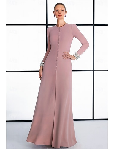 A-Linie Bodenlang Abendkleid Ballkleid Festliche Kleidung Elegant Promi-Stil Langarm Rundhalsausschnitt Formell Hochzeit Samt Stretch-Crêpe mit Perlenstickerei Tasche