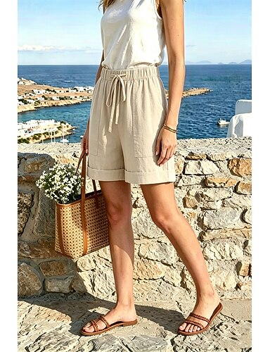 Damen Kunstbaumwollleinen Chinos Shorts Sommershorts Urlaub Streetwear Lässig Kurz Mittlere Taillenlinie Einfach Tasche Bequem Atmungsaktiv Unelastisch Täglich Outdoor Urlaub Weiß Knackmandel Sommer
