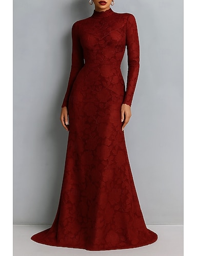 A-Linie Bodenlang Abendkleid Ballkleid Festliche Kleidung Elegant Vintage Langarm Hoher Ausschnitt Hochzeit Formell Tasche Spitze mit Blumenmuster