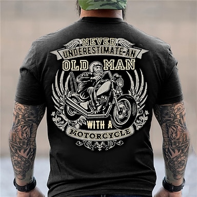 Grafik T-Shirt für Männer Unterschätze niemals einen alten Mann mit einem Motorrad Biker-Lifestyle T-Shirt