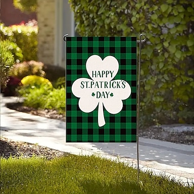 St. Patrick Day Gartenflagge, 30,5 x 45,7 cm, Outdoor-Dekorationen, Willkommens-Garten-Terrassen-Flagge, Glücksklee, Hofzwerge, Regenbogenflagge, doppelseitige Feiertags-Außenflaggen, 1 Stück