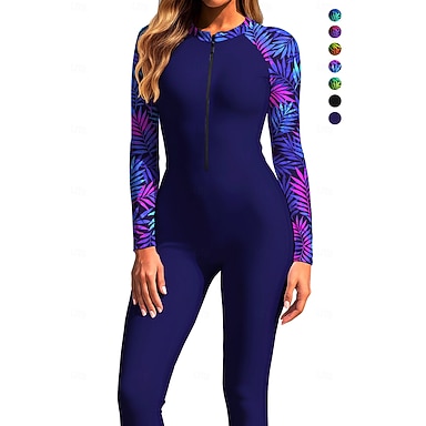 Damen Regulär Anti UV Shirt Einteiliger Surfanzug Badeanzug Blumen Tropisch Farbblockierung Reißverschluss mit integriertem BH Herausnehmbare Polsterung UV-Sonnenschutz UPF50+ Ultraleicht (UL) Langarm