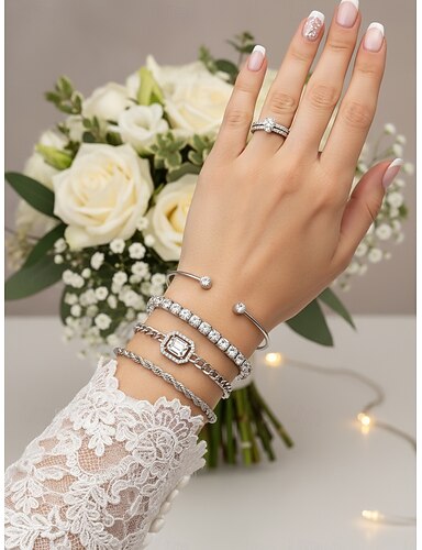 Brautschmuck-Sets 4 Zirkon Ringe 1 Halskette 1 Armband Ohrringe Damen Elegant Vintage Personalisierte Lieblich Klassisch Liebe Kostbar Schmuck-Set Für Hochzeit Arbeit Geburtstag