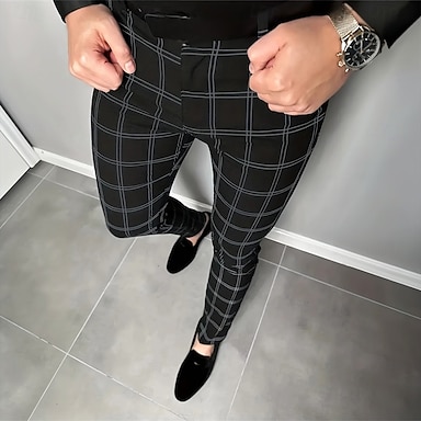 Herren Geometrisch Karo / Karomuster Anzughose Hose Mittlere Taille Business-Casual Formell Alltagskleidung Slim Fit Hose mit Taschen Frühling Herbst 3D-Druck Schwarz Weiß