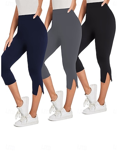 Damen Caprihose Sommershorts Leggings Mode Streetwear Basic Wadenlang Hohe Taille Einfach Elastischer Bund Atmungsaktivität Bequem Dehnbar Täglich Urlaub Fitnessstudio Dunkelgrau Schwarz Marineblau
