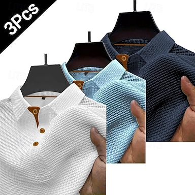 Mehrfachpackungen 3er-Pack Herren Revers Kurze Ärmel Weiß / Schwarz / Blau Polo mit Knopfleiste Golfshirt Golf Poloshirts Jacquard Einfach Urlaub Alltagskleidung Polyester Sommer