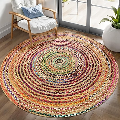 Boho-Jute-Teppich, 2D-Flachdruck, farbenfrohe Spiralmatte, umweltfreundliche Heimdekoration, weiche, rutschfeste Matte für Wohnzimmer und Schlafzimmer