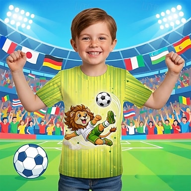 Jungen 3D Grafik Löwe Fußball T-Shirt Kurzarm 3D-Druck Sommer Frühling Sport Mode Streetwear Kinder 4-12 Jahre Rundhalsausschnitt Lässig Täglich Outdoor Normale Passform