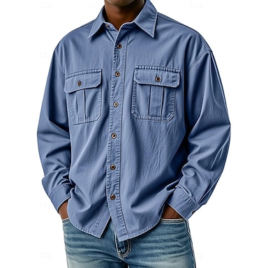 Herren Hemd Freizeithemd Knopfhemd Cargohemd Schwarz Weiß Rote Marineblau Grün Langarm Einfach Hemdkragen Lässig Täglich Fronttasche Bekleidung Elegant Mode Lässig