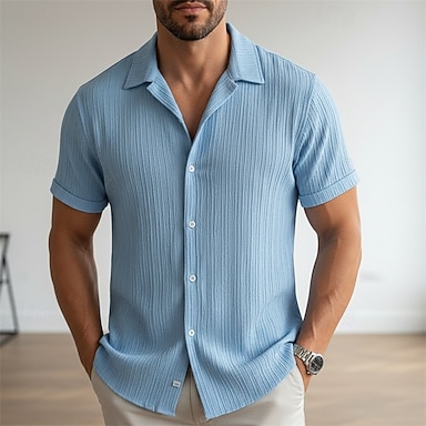 Herren Hemd Rippenstrick Textur Freizeithemd Knopfhemd Schwarz Weiß Hellgrün Burgunderrot Marineblau Kurzarm Einfach Hemdkragen Lässig Täglich Fronttasche Bekleidung Elegant Mode Lässig