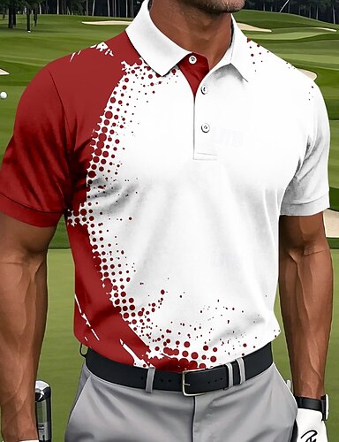 Herren Abstrakt Golf Sport-Poloshirts Kurzarm Polo-Shirts Hemden mit Kragen Lässig Athleisure Knöpfe Frühling & Sommer Blau Rote Purpur