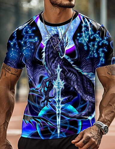 Herren Drache T Shirt Kurzarm T-Shirt 3D-Druck Rundhalsausschnitt Hemd Übertrieben Designer Party Straße Lässig Blau Sommer Frühling Ganzjahres Bekleidung S M L XL XXL XXXL 4XL