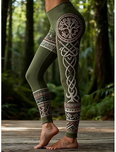 Damen Vikinger Leggings Gemütliche Leggings Urlaub Vintage Ethno-Stil Volle Länge Hohe Taille Grafik Drucken Bequem Hohe Elastizität Lässig Täglich Urlaub Grün Frühling Herbst Schmale Passform