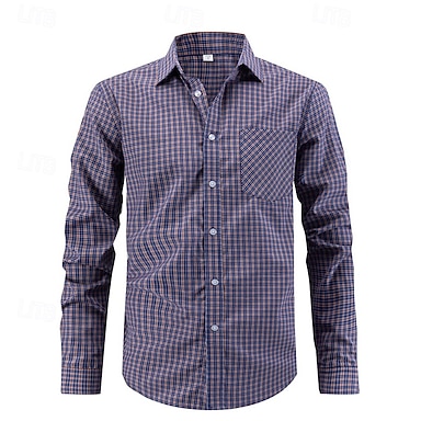 Herren Hemd Kleidhemd Knopfhemd Karomuster Hochzeit Täglich Blau Braun Grau Langarm Umlegekragen Frühling Herbst Bekleidung Fronttasche