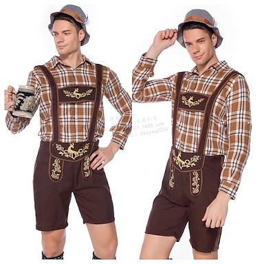 Oktoberfest Bluse / Hemd Lederhosen Bayerisch Deutsch München Wiesn Herren Stoff im traditionellen Stil Hemd Shorts Hut