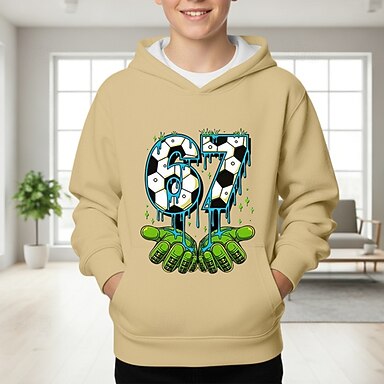 Baumwolle Kinder Jungen Schwarz Weiß Grafik Fußball Lustiger Slang 67 T-Shirt Bluse Rundhalsausschnitt Kurzarm Outdoor Alltagskleidung Mode Streetwear Designer Drucken Sommer