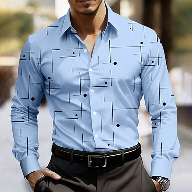 Herren Geometrisch Punkte Abstrakte Kunst Hemd Knopfhemd Langarm Modisch lässig Outdoor Alltagskleidung Frühling Herbst Umlegekragen 3D-Druck Hemden mit Kragen Blau Weiß Grün Grau