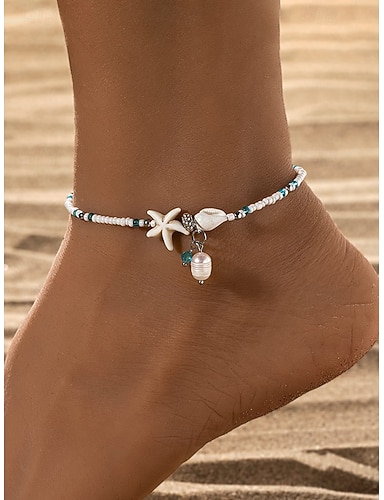 Damen-Fußkettchen im Bohemian-Stil mit Seesternperlen – verstellbarer Fußschmuck aus Strandmuscheln mit Perlen und Anhängern für den Sommerurlaub, Festivals oder den Alltag