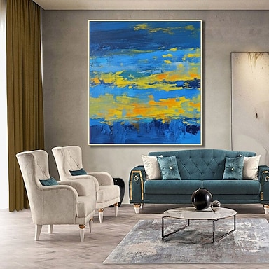 handgemaltes, originales abstraktes Gemälde in Blau und Gelb, zeitgenössische abstrakte Kunst, großes abstraktes Gemälde, extra große Textur, abstrakte Kunst