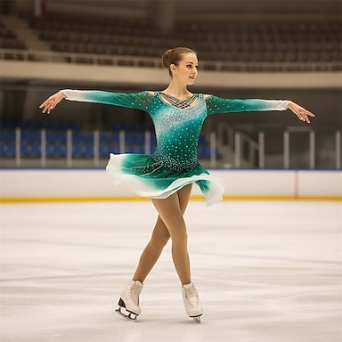 Eiskunstlaufkleid Damen Mädchen Eislaufen Kleid Grün schwarz Daumenloch Halo-Färbung Netzstoff Spandex Dehnbar Training Übung Professionell Eiskunstlaufkleidung Thermowarm Klassisch Kristall / Strass