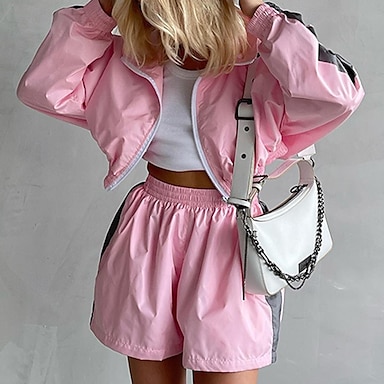 Damen Trainingsanzug Jogginghose Lounge-Outfits Reißverschluss Tasche Einfarbig Kombination Herbst Winter Schwarz Weiß Fitnessstudio Training Laufen Hohe Taille Winddicht Leicht