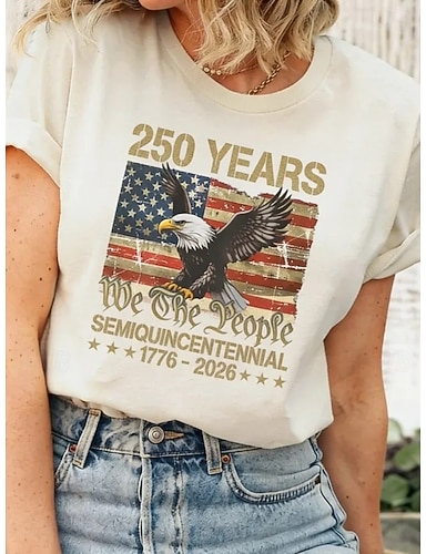 Amerikanischer Unabhängigkeitstag Damen T Shirt Druck Grafik Buchstabe Amerikanische Flagge Stilvoll Klassisch Lässig Kurzarm Rundhalsausschnitt Normale Oberteile Täglich Beige Sommer Frühling