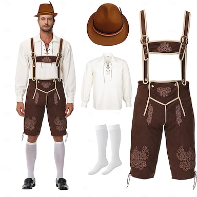 Oktoberfest Lederhosen Hemd Alpenhut Bayerisch Deutsch Wiesn Herren Karneval Party Bier Festival Stoff im traditionellen Stil Bluse Shorts Austattungen