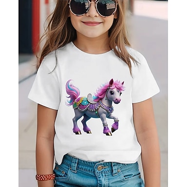 3D-Hunde-T-Shirts für Mädchen, kurzärmelig, 3D-Druck, Sommer, aktiv, modisch, niedlich, Polyester, Kinder 3–12 Jahre, Rundhalsausschnitt, Outdoor, lässig, täglich, normale Passform
