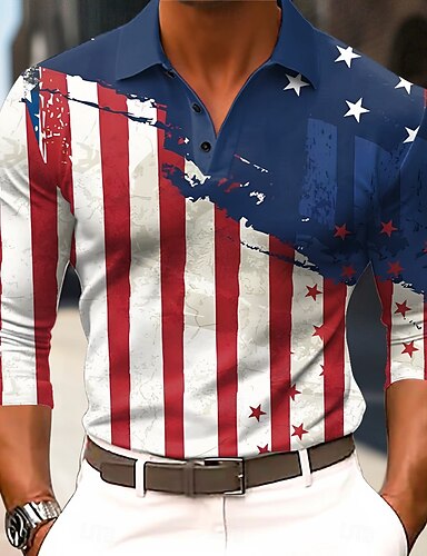 4. Juli 2026 250. Herren Amerikanische US-Flagge Polo Langarm Polo-Shirts Revers Lässig Outdoor Alltagskleidung Festival-Outfit 3D-Druck Knöpfe Frühling Herbst Winter Blau Blau 1 Blau 3#