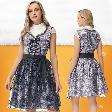 Halloween Cosplay Kostüm Dirndl Trachtenkleider Kurzer Rock Bayerisch Urlaubskleid Erwachsene Damen Mädchen Karneval Einfache Halloween-Kostüme Verkleiden