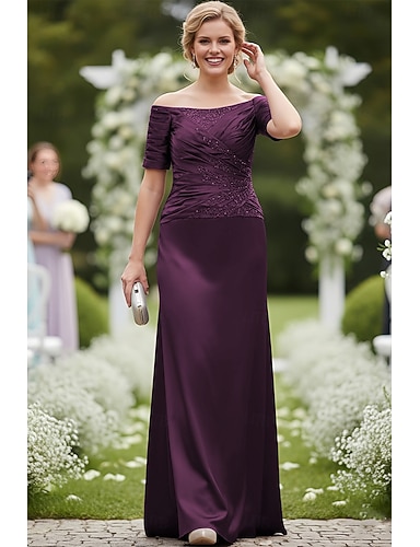 A-Linie Knöchellänge Satinkleid Kleid für Hochzeitsgäste Abendkleid Brautmutterkleid Kurzarm Schulterfrei Elegant Einfach Formell Hochzeitsgast Cocktailparty Satin mit Schleife(n)