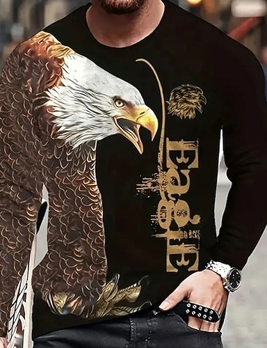 Herren Grafik Tiermotiv Adler T Shirt Langarm T-Shirt 3D-Druck Rundhalsausschnitt Hemd Mode Designer Lässig Sport im Freien Ferien Ausgehen Blau Purpur Braun Frühling & Herbst Bekleidung S M L XL 2XL