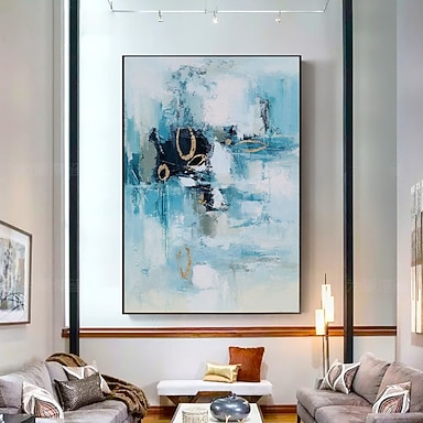 Handgefertigtes Ölgemälde auf Leinwand, Wandkunst, Dekoration, moderner abstrakter blauer Farbblock für Wohnkultur, gerolltes, rahmenloses, ungedehntes Gemälde