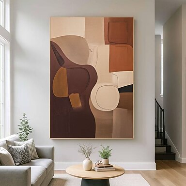 Minimalistisches, beruhigendes Landschaftsgemälde auf Leinwand, großes zeitgenössisches monochromes Kunstwerk, vertikale Wanddekoration, braun-beige Leinwandkunst