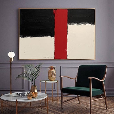 Handgemaltes abstraktes Ölgemälde in Schwarz, Weiß und Rot mit Blockmesser, originelle moderne Kunsttextur, kreative Wanddekoration fürs Schlafzimmer, Geschenk