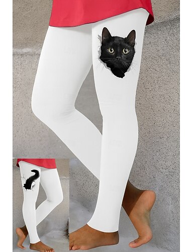 Damen Leggings Urlaub Vintage Ethno-Stil Volle Länge Hohe Taille Grafik Tiermotiv Katze 3D-Druck Schnelltrocknend Atmungsaktivität Weich Dehnbar Täglich Heim Outdoor Weiß Herbst Schmale Passform