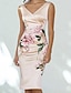 Damen Midikleid Satinkleid Etui-Kleid Druckkleid Elegant Mode Modern Outdoor Urlaub Täglich Normale Passform Blumen Ärmellos V Ausschnitt Rosa Herbst Winter
